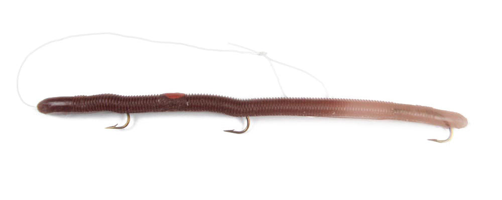 his Natural Plastic Pre-Rigged 5 1/2″ Life-Like Worm Draws Fish From All Directions! Made With Three No. 6 Mustad Hooks. Hand Tied-Hand Sewn 17 lb. Test Inside Leader. Tail End Stinger Hook Makes It Possible To Catch A Variety Of Panfish While Fishing For Bass. Made In Six Of Natures Natural Colors. With Built-In Fish Catching Scent “Anise Scented Plus”.™